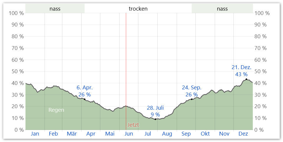 As these figures show, the winter months (January to March) are rainy , while the summer months (July and August) have the fewest rainy days . The mild climate and rainfall contribute to the island's lush vegetation, making Flores an ideal place for nature lovers. However, travelers should be prepared for more frequent rain, especially during the cooler months.